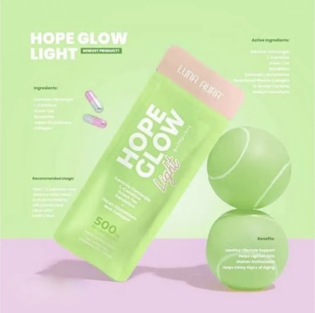 Hope Glow Light 500 mg – Glutathion Japonais & Collagène 30 caps